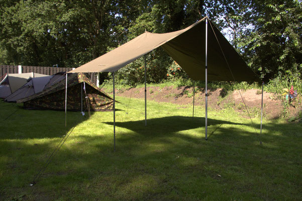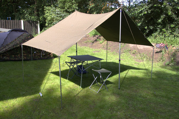 Das Tarp ist mit den Jahren entstanden. Es gab immer wieder Anlässe wo es schade war im Zelt sitzen zu müssen nur weil das Wetter nicht so ganz mitspielte.